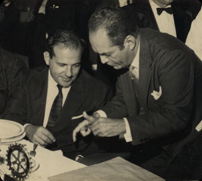 Inauguração da Colônia de Férias de Praia Grande em Julho de 1953, Deputado Pinheiro Júnior, Presidente da USPESP, com o Governador Lucas Garcez.
